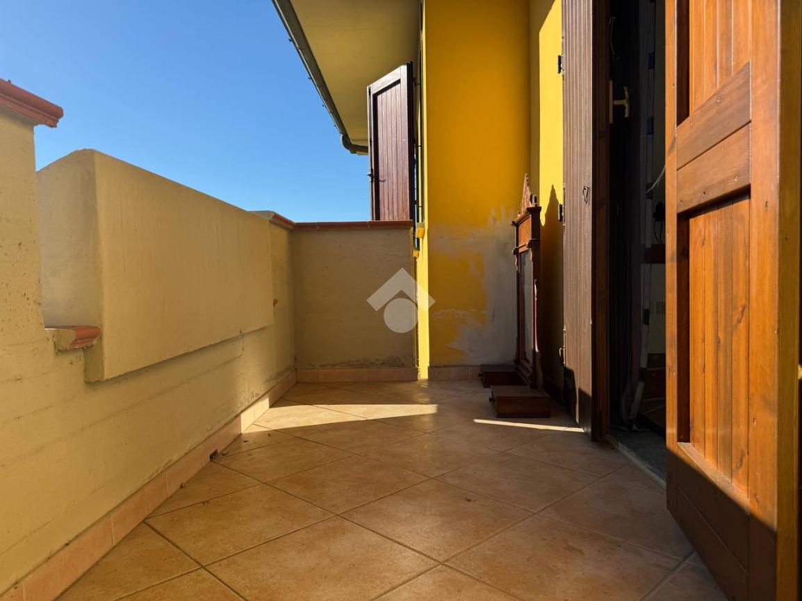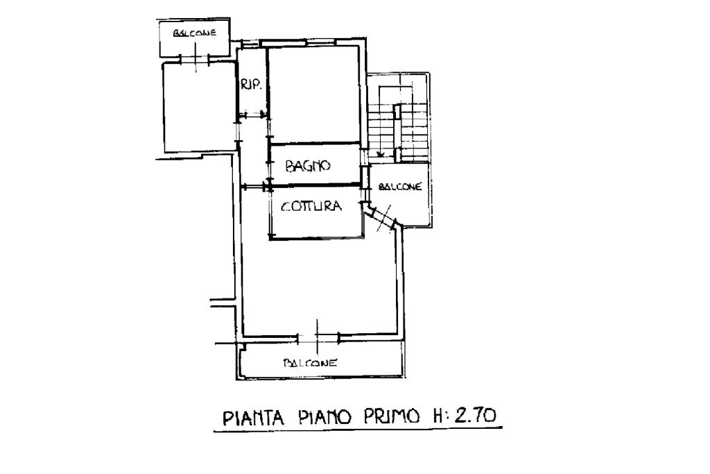 L’ingresso, raggiungibile tramite vano scala esterno, si apre su un luminoso soggiorno con accesso diretto al balcone e su un cucinotto finestrato.