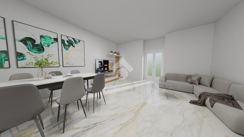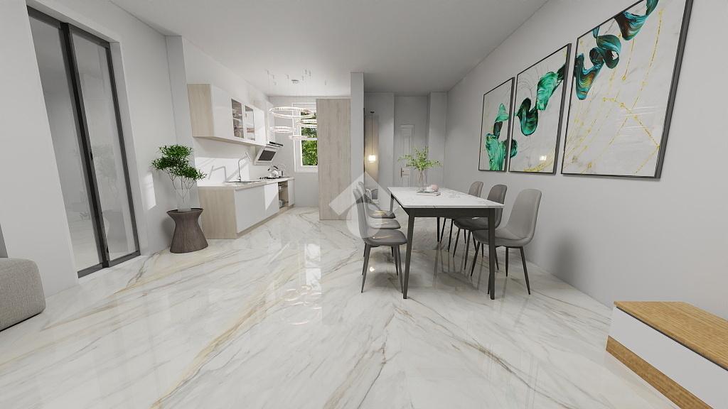 L’ingresso conduce direttamente alla zona giorno, composta da un ampio open space con angolo cottura e sala da pranzo, ambiente luminoso e ben organizzato, dal quale si accede ai terrazzi esclusivi.